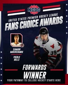 Read MoreBy Joshua Boyd / USPHL.com The votes came in and Siamion Marshchanok has won a USPHL Fans Choice award for a second straight year. After being named the USPHL Premier Fans Choice MVP for 2023-24, he is now the NCDC Fans Choice Forward Of The Year. The people have spoken – twice! Marshchanok was also…