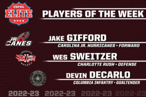 Read MoreUSPHL Elite Players Of The Week: Sept. 15, 2022 By USPHL Staff The USPHL congratulates its first group of Players Of The Week, for this week only representing all of the league as only six teams competed last week. Going forward, Players Of The Week will be awarded by Division. Forward: Jake…