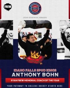 Read MoreBy Joshua Boyd / USPHL.com The National Collegiate Development Conference congratulates Idaho Falls Spud Kings Head Coach Anthony Bohn on winning the 2024-25 Mountain Division Ryan Frew Memorial Coach Of The Year Award. The award is given to the top coach of each NCDC division, as voted by their peers, and is given in memory…