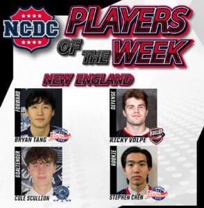 Read MoreWeek of Jan. 8, 2025 Games played Jan. 1-6, 2025 Forward: Xavier Vaillancourt, South Shore Kings Vaillancourt (‘04/Pointe-Claire, Quebec) scored five points over two games this week, helping the South Shore Kings cement their spot at the top of the New England Division leaderboard. The left wing is playing his second NCDC season and…