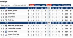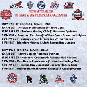 Read MoreBy Marlee Bulman / USPHLElite.com Wilkes-Barre/Scranton Knights Seed: Mid-Atlantic #1 Round Robin Schedule All games to be played at Utica University Nexus Center, Utica, N.Y. Game 1: Thursday, March 23, vs Islanders Hockey Club, 7:30 p.m. Game 2: Friday, March 24, vs Tampa Bay Juniors, 5 p.m. Game 3: Saturday, March 25 th , vs…