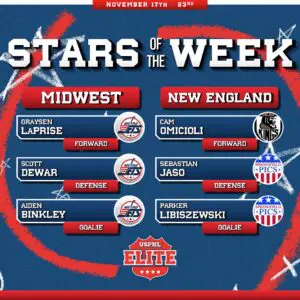 The United States Premier Hockey League (USPHL) Elite has announced its Division Stars of the Week, recognizing standout performances from November 17-23, 2025. Only players nominated by their teams were eligible for consideration.