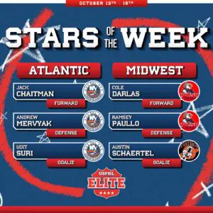 The United States Premier Hockey League (USPHL) Elite has announced its Division Stars of the Week, recognizing standout performances from October 13-19, 2025.