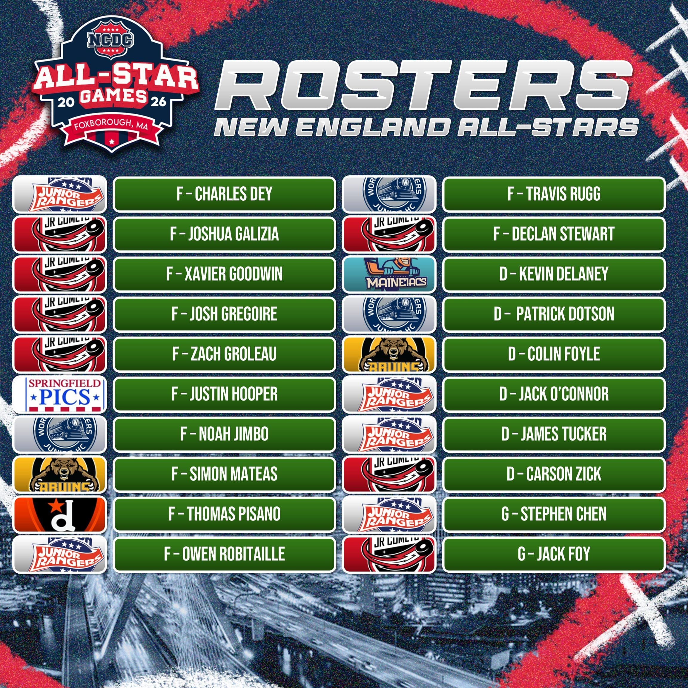 The National Collegiate Development Conference (NCDC) has officially announced the full rosters for the 2026 NCDC All-Star Games, showcasing the league’s premier talent from across North America. The annual All-Star Event will take place January 26–27, 2026, at the Foxboro Sports Center in Foxborough, Massachusetts.