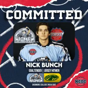 A two-year veteran of the Jersey Hitmen, goaltender Nick Bunch is proud to announce his NCAA Division III commitment to Skidmore College for the 2026-27 season.