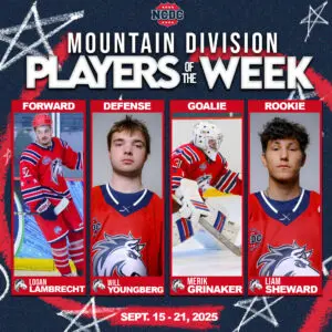 Ogden forward Logan Lambrecht (’06) was a difference-maker in the Mustangs’ sweep of Casper, collecting three points across the two-game set. In Friday’s 6-1 win, the Williston, VT native scored a power-play goal and added an assist for a two-point performance. He followed it up on Saturday by burying the overtime winner in a 2-1 victory. Lambrecht now has five points through four games this season.