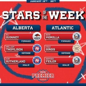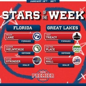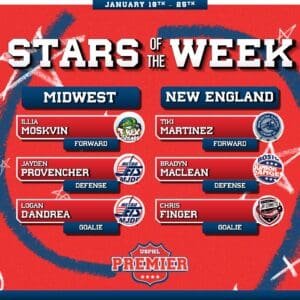 The United States Premier Hockey League (USPHL) Premier has announced its Division Stars of the Week, recognizing standout performances from across the league during the week of January 19–25, 2026. Only players nominated by their teams were eligible for consideration.