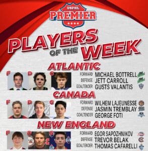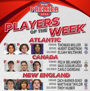Read MoreWeek of Feb. 1, 2025 Games of Jan. 21-27, 2025 New England Division Forward: Zack Warner-Senee, Worcester Railers JHC Warner-Senee (‘06/Leominster, Mass.) registered three goals and four assists for seven points over two games against the Boston Junior Bruins and Thunder Hockey Club. Warner-Senee, who also represented Worcester in the All-Star event and…