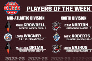 Read MoreUSPHL Elite Players Of The Week: Sept. 15, 2022 By USPHL Staff The USPHL congratulates its first group of Players Of The Week, for this week only representing all of the league as only six teams competed last week. Going forward, Players Of The Week will be awarded by Division. Forward: Jake…