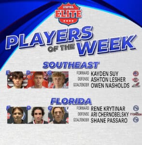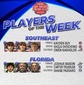 Read MoreWeek of Dec. 23 Games played Dec. 17-22 Southeast Division Forward: Matvei Naumov, Potomac Patriots Naumov (‘04/Ufa, Russia) helped the Potomac Patriots go 3-1 this week at the USPHL Florida College Showcase, registering 10 points across three goals and seven assists, including the game-winning goal on Dec. 22. In his third season with the Premier,…