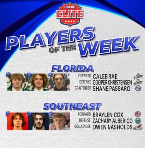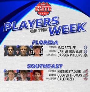 Week of Oct. 31, 2024 Games of Oct. 22-28, 2024 Florida Division Forward: Joseph Walter, Atlanta Mad Hatters Walter (‘05/Crawford, Pa.) registered a 3-2-5 line as the MadHatters split with the Palm Beach Typhoon, and he now has a 4-5-9 line in 11 games. Defense: Zachary Smith, Palm Beach Typhoon Smith (‘05/Charlotte, N.C.)…