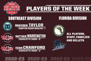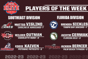 Read MoreUSPHL Elite Players Of The Week: Sept. 15, 2022 By USPHL Staff The USPHL congratulates its first group of Players Of The Week, for this week only representing all of the league as only six teams competed last week. Going forward, Players Of The Week will be awarded by Division. Forward: Jake…
