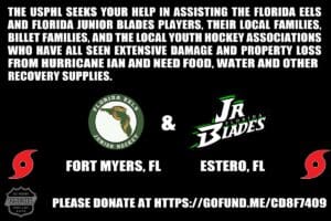 The USPHL seeks your help in assisting the Florida Eels and Florida Junior Blades players, their local families, billet families, and the local youth hockey associations who have all seen extensive damage and property loss and need food, water and other recovery supplies. Donate At https://gofund.me/cd8f7409 Hurricane Ian has left Fort Myers, Florida, and surrounding…