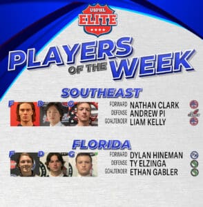 Read MoreWeek of Oct. 31, 2024 Games of Oct. 22-28, 2024 Florida Division Forward: Joseph Walter, Atlanta Mad Hatters Walter (‘05/Crawford, Pa.) registered a 3-2-5 line as the MadHatters split with the Palm Beach Typhoon, and he now has a 4-5-9 line in 11 games. Defense: Zachary Smith, Palm Beach Typhoon Smith (‘05/Charlotte, N.C.)…
