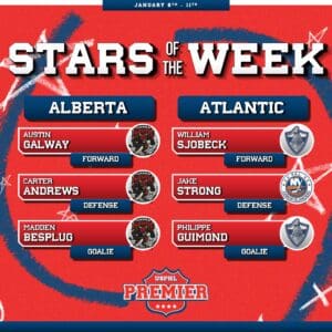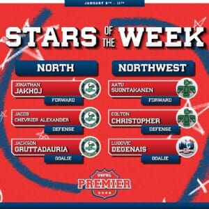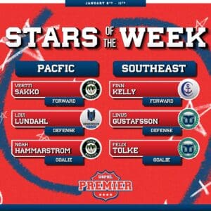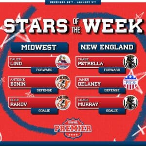 The United States Premier Hockey League (USPHL) Premier has announced its Division Stars of the Week, recognizing standout performances from across the league during the week of January 6–11, 2026. Only players nominated by their teams were eligible for consideration.