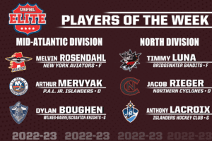 Read MoreWeek of Oct. 22, 2022 By Marlee Bulman and Joshua Boyd / USPHL.com North Division Bridgewater Bandits (2-0) The Bandits have really been enjoying the 2022-23 season. They have just come off two massive wins, perhaps no bigger than ending the Northern Cyclones’ previously undefeated streak by beating them 3-2 in overtime on Oct.…