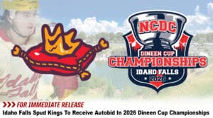 Read MoreFOR IMMEDIATE RELEASE Idaho Falls, Idaho – May 14, 2025 – The National Collegiate Development Conference (“NCDC”) is proud to announce that the Idaho Falls Spud Kings will receive an autobid to compete in the 2026 Dineen Cup Championship series as hosts of the Dineen Cup Championships, which will run April 24-28, 2026. The Spud…