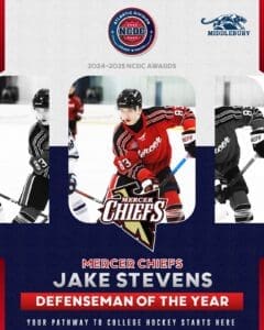 Read MoreBy Joshua Boyd / USPHL.com The National Collegiate Development Conference congratulates Jake Stevens of the Mercer Chiefs for being named the 2024-25 Atlantic Division Defenseman Of The Year. “It is such an honor and privilege to receive this award and to think I am now a part of the incredible players to win this…