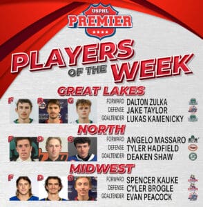 Read MoreWeek of Dec. 11, 2024 Games of Dec. 3-9, 2024 Northwest Division Forward: Reid Taylor, Iron County Yeti Taylor (‘06/Morrison, Colo.) was massive over the past weekend against Colorado and Vernal, putting up four goals – two in each game – plus four assists for eight points. He is currently enjoying a five-game point streak…