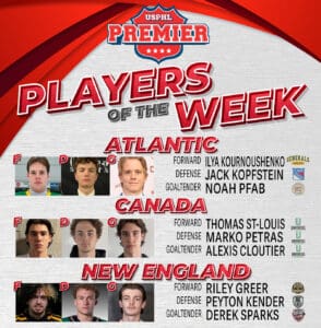 Read MoreWeek of Dec. 11, 2024 Games of Dec. 3-9, 2024 New England Division Forward: Riley Greer, Junior Bruins A veteran of the Junior Bruins’ 18U AAA team of the Tier 1 Hockey Federation, Greer (‘05/Daytona Beach, Fla.) had a fantastic outing on Dec. 6, putting up two goals and three assists against the Thunder…