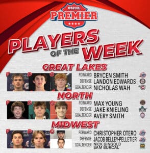 Read MoreWeek of Nov. 9, 2024 Games of Oct. 29-Nov. 4, 2024 New England Division Forward: Justin Scarbrough, Northern Cyclones Scarbrough (‘04/Redondo Beach, Calif.) was immense in putting a 3-4-7 line up on Nov. 2, bringing his points per game up to an even 1.00 points per game average. Defense: Nick Zanin, Springfield Pics…
