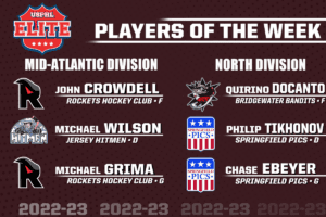Read MoreWeek of Nov. 1-7, 2022 Mid-Atlantic Division (Summaries By Marlee Bulman) Forward: John Crowdell, Rockets Hockey Club Crowdell (’03/Staten Island) has put up some impressive numbers this season so far. His points per game average currently sits at 2.29. This past week, the Rockets faced the P.A.L. Jr. Islanders, getting both wins. Crowdell had…
