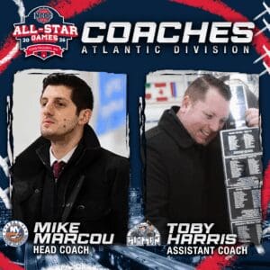 Mike Marcou of the P.A.L. Junior Islanders will serve as Head Coach for the Atlantic Division team, joined by Toby Harris of the Jersey Hitmen as Assistant Coach.