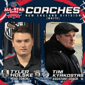 Tyler Holske of the South Shore Kings has been selected as Head Coach for the New England White team, assisted by Tim Kyrkostas of the Islanders Hockey Club.