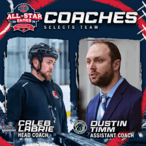 The Selects team will be guided by Head Coach Caleb Labrie from the Lewiston MAINEiacs, alongside Assistant Coach Dustin Timm of the Grand Junction River Hawks.