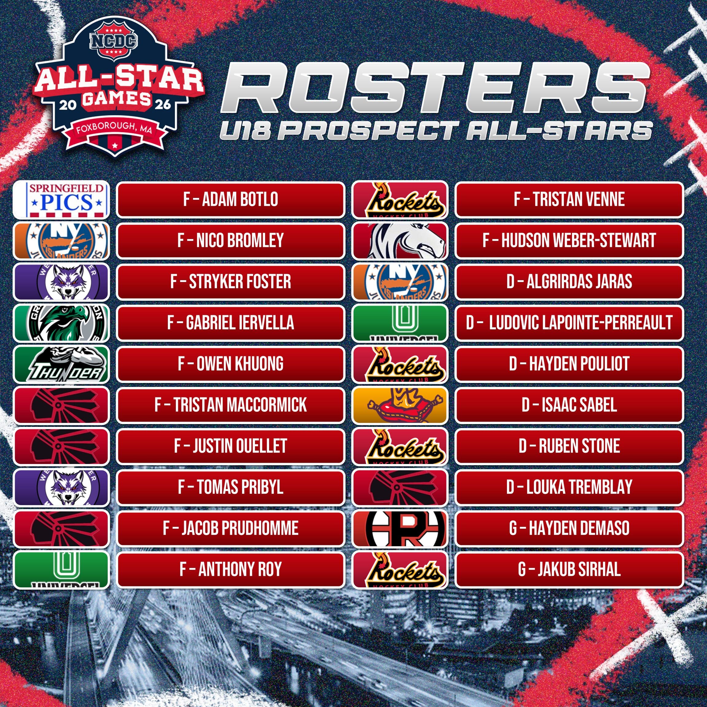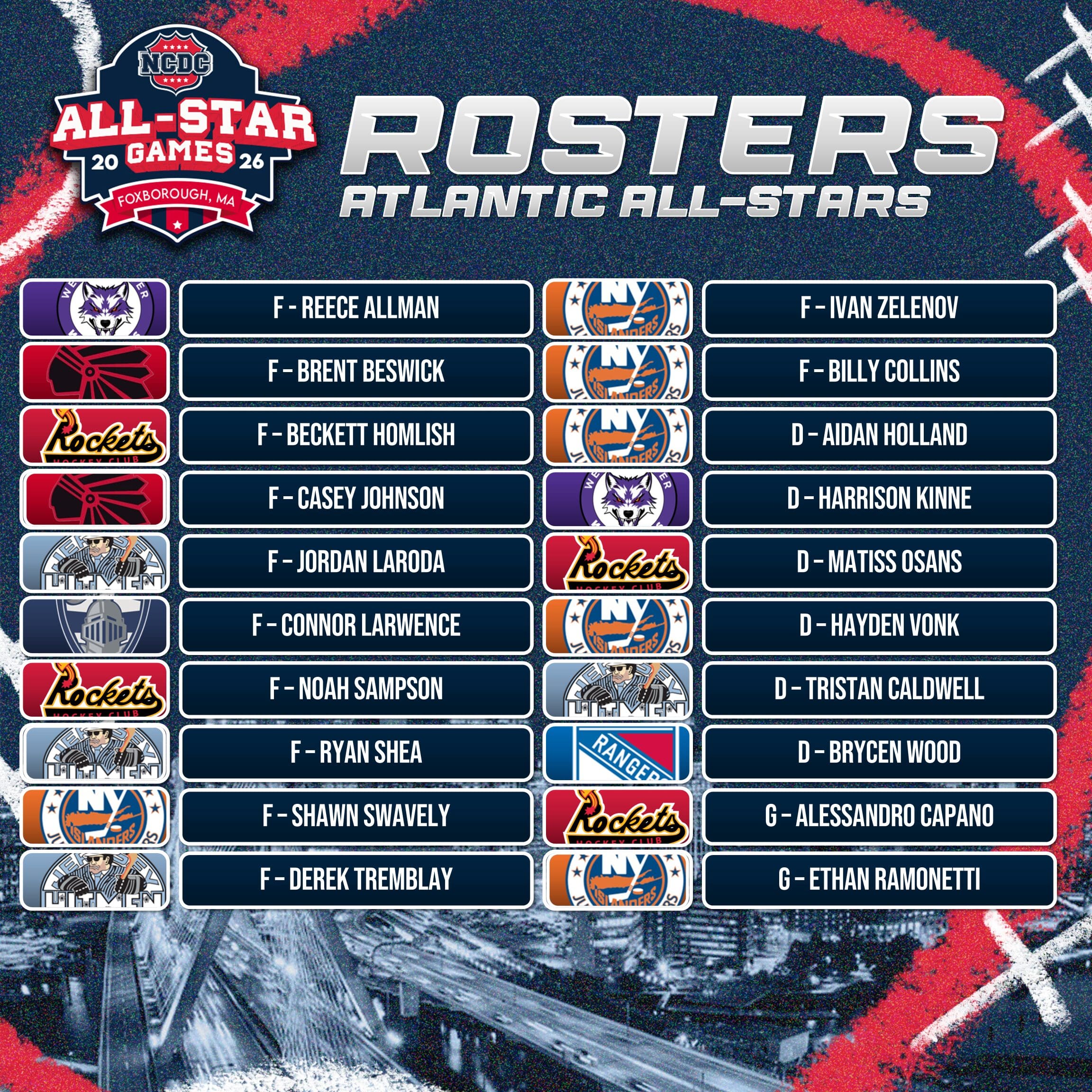 Top Players From Across the League Set to Compete January 26–27 in Foxborough, Massachusetts The National Collegiate Development Conference (NCDC) has officially announced the full rosters for the 2026 NCDC All-Star Games, showcasing the league’s premier talent from across North America. The annual All-Star Event will take place January 26–27, 2026, at the Foxboro Sports Center in Foxborough, Massachusetts. The 2026 event will feature All-Star teams representing the Atlantic, Mountain, New England Green, and New England White conferences, along with NCDC Selects and U18 Prospects teams. Together, these rosters reflect the depth, competitiveness, and developmental focus that define the NCDC as one of junior hockey’s leading pathways to college hockey advancement. The All-Star Games provide a premier stage for athletes to compete alongside and against the league’s best, while being evaluated by coaches, scouts, and hockey decision-makers from across the collegiate and junior hockey landscape.