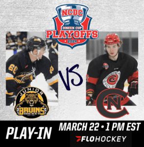 Read MoreBy Joshua Boyd / NCDCHockey.com The 2024 NCDC Dineen Cup Playoffs will begin on Friday, March 22, with a pair of single elimination showdowns, one in each of the New England and Atlantic Divisions, considered the Play-In Games. The winners of each of these games will face the No. 1 seed in each division…