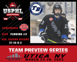 Read MoreBy Brendan Price / USPHLElite.com Tampa Bay Juniors Seed: Florida #2 Round Robin Schedule All Games to be played at Utica University Nexus Center Game 1: Thursday, March 23, vs. Carolina Jr. Hurricanes, 11 a.m. EST Game 2: Friday, March 24, vs. Wilkes-Barre/Scranton Knights, 5 p.m. EST Game 3: Saturday, March 25, vs. Islanders…