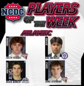 Read MoreWeek of Jan. 30, 2025 Games of Jan. 21-27, 2025 Forward: Justin Thibault, Mercer Chiefs Before Thibault (‘08/Levis, Que.) posted two assists for the NCDC All-Star Prospects earlier this week, he added one goal and four assists to his name for the Mercer Chiefs. In his rookie season for the NCDC, he has 30…